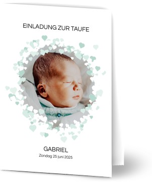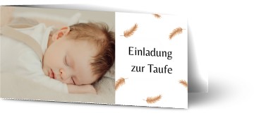 Klassische Taufeinladungskarten mit genauen Angaben und Text sowie Bildern sind einfach perfekt um ein besonderes Andenken an diesen wichtigen Tag zu schaffen. Sobald die Zeit für die Taufe Ihres Kinds gekommen ist, kann sich die Wahl der Taufeinladungskarten als schwierig erweisen. Entscheiden Sie sich für ganz persönliche, klassische Taufkarten. Bei uns finden Sie ein vielfältiges Angebot von Vorlagen für Karten für die Taufe aus denen Sie auswählen können und in welche bereits Text- und Fotofelder eingefügt sind. So ist es ganz einfach klassische Taufkarten mit einem persönlichen Touch zu erstellen. Sie finden nicht die richtigen Worte? Unsere Einladungsvorlagen sind bereits mit Text versehen. Sie müssen also nicht besorgt sein, dass Sie eine wichtige Angabe vergessen könnten. Sie haben eine Idee und würden gerne einen bestimmten Text oder Psalm einfügen? Kein Problem! Sie können Textfelder noch bearbeiten oder Ihren Karten für die Taufe hinzufügen, um beliebige Informationen oder beliebigen Text entsprechend Ihren Vorstellungen hinzuzufügen. Sie benötigen zusätzlich eine Wegbeschreibung oder Karten mit ergänzenden Informationen? Wenn auf einer doppelseitigen, gefalteten Karte hierfür nicht genügend Platz ist warum erstellen Sie nicht einfach individuelle Taufeinladungskarten mit einer Wegbeschreibung oder Zu- und Absagen, die Sie zusammen mit Ihren klassischen Taufeinladungen versenden? Wofür auch immer Sie sich entscheiden, die nach Ihren Vorgaben zusammengestellten Produkte drucken wir stets auf Qualitätspapier. Sie wissen also, dass Ihre Taufeinladungskarten immer von höchster Druckqualität sein werden.