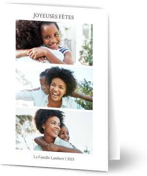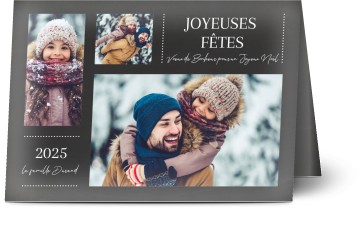 Cartes avec montage photo - Personnelles et uniques - Les cartes avec montage photo sont un excellent moyen de s'exprimer et de surprendre ceux que l'on aime. Elles constituent non seulement de formidables cadeaux et invitations pour des occasions spéciales, mais aussi des souvenirs attentionnés à offrir sans aucune raison. Cet article traite des cartes photo, de leur utilisation, des raisons pour lesquelles elles sont si spéciales et, bien sûr, de la manière de créer les vôtres avec Optimalprint. Qu'est-ce qu'une carte avec montage photo ? Une carte avec montage photo est une carte de vœux qui présente plusieurs photos disposées de manière créative. Les cartes avec montage photo peuvent être créées sur mesure à l'aide de logiciels ou achetées dans le commerce. Les photos qu'elles contiennent peuvent être des portraits de famille, des photos de vacances, des œuvres d'art ou d'autres souvenirs personnels, en fonction de leur objectif. Quoi qu'il en soit, une carte est généralement considérée comme un « montage » si elle comporte trois photos ou plus dans le même espace. Que faire d'une carte avec montage photo ? Vous vous demandez peut-être ce que vous pouvez faire avec une carte avec montage photo, et il y a de nombreuses réponses à cette question. Les cartes photo sont généralement créées pour être envoyées à quelqu'un d'autre, souvent en guise de vœux ou de souvenir. Elles sont souvent envoyées à l'occasion de fêtes. Par exemple, les cartes de vœux avec photo pour Noël sont populaires parmi les familles qui les envoient à leurs amis et à leur famille élargie pour leur souhaiter de bonnes fêtes. La plupart des familles choisissent un thème pour leur carte de vœux avec photo ou y incluent des photos de leurs dernières vacances. Les cartes photo sont également très appréciées pour les fêtes d'anniversaire, les anniversaires de mariage et d'autres occasions. Par exemple, une carte d'anniversaire avec montage photo peut inclure des photos de la personne qui fête son anniversaire, de son enfance à aujourd'hui, ou des images de ses amis et de sa famille. Dans certains cas, les cartes avec montage photo sont même utilisées comme un moyen créatif de commémorer la vie d'un être cher. Vous pouvez y inclure vos souvenirs préférés sous forme de photos et d'œuvres d'art. Quel est l'intérêt de créer des cartes avec montage photo ? En lisant ces lignes, vous vous dites peut-être : « En quoi cela me concerne-t-il ? Cela a l'air de prendre du temps ». Mais ne balayez pas tout cela d'une seule main ! Les cartes avec montage photo sont spéciales parce qu'elles montrent que vous avez pris le temps de les créer. C'est une façon très personnelle de vous exprimer tout en montrant à quel point vous tenez à la personne qui reçoit la carte. Les cartes photo sont également très utiles pour un usage personnel. Si vous souhaitez garder en mémoire un moment particulier, pourquoi ne pas créer des cartes personnalisées pour le commémorer ? Vous pourrez vous les garder en souvenir pendant des années et les apprécier à leur juste valeur. De plus, elles peuvent également servir d'invitations. Les cartes photo peuvent être utilisées pour inviter quelqu'un à un événement ou à une célébration. Vous pouvez inclure des photos du lieu, des invités et du thème pour susciter l'enthousiasme des invités. Comment créer une carte avec montage photo ? Il existe plusieurs façons de créer des cartes avec montage photo. Premièrement, vous pouvez tout faire vous-même, ce qui prend plus de temps mais en vaut la peine si vous voulez créer des cartes personnalisées qui ont l'air authentiques et faites à la main. Une autre option consiste à créer votre carte avec Optimalprint. Notre outil en ligne met entre vos mains la puissance d'un design de qualité professionnelle, vous permettant de créer vos propres cartes avec montage photo en quelques clics seulement. Créer une carte avec montage photo sur Optimalprint 1. Sélectionnez vos photos Avant même de commencer à travailler sur la carte elle-même, vous devez choisir les images que vous souhaitez utiliser. Il n'y a pas de règles ici, alors choisissez comme bon vous semble. Le seul conseil que nous pouvons vous donner est de sélectionner des photos en rapport avec l'objectif de votre carte photo et, idéalement, des photos qui vont bien l'une à côté de l'autre. 2. Choisissez un format Quel type de format souhaitez-vous utiliser ? Nous vous proposons un certain nombre d'orientations et de formats, des cartes pliées 5" x 7" aux cartes simple face 5,5" x 4,25". Au cours de cette étape, vous aurez également la possibilité de décider si vous souhaitez que vos cartes photo aient des angles vifs ou arrondis et quel type de finition papier vous préférez. 3. Créez votre carte avec montage photo Il est maintenant temps de faire preuve de créativité et de donner vie à votre carte. L'outil d'édition d'Optimalprint dispose d'un large éventail de fonctionnalités qui vous permettent de recadrer, de faire pivoter et de redimensionner les images jusqu'à ce qu'elles s'intègrent dans la mise en page souhaitée. Vous pouvez vous procurer ces images à partir de plusieurs endroits, notamment Google Photos, Facebook, Instagram et Dropbox. 4. Enregistrez, prévisualisez et imprimez Lorsque vous êtes satisfait de votre conception finale, enregistrez la carte sur votre appareil ou sur notre espace de stockage sur le cloud. Vous pouvez ensuite la prévisualiser pour vous assurer que tout est correct et acheter les cartes photo pour la livraison. En quelques jours, vous disposerez de cartes photo flambant neuves prêtes à être envoyées. Créer des cartes avec montage photo avec Optimalprint est simple comme bonjour. Vous fournissez les photos, nous vous donnons un moyen simple et direct de les mettre en valeur. C'est aussi simple que cela. Commencez à créer dès aujourd'hui !