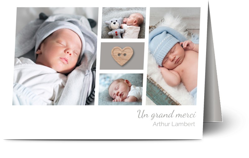 Cette Cartes de remerciement bébé vous offre un design moderne dans des tons blanc . Ce design splendide comprend également des boutons et des cadres.
