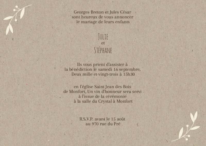 Papier cartonné blanc non vernis, qui offre plus de structure à votre carte, et un fini mat. L'encre est absorbée par le papier, vous permettant d'écrire sur le papier facilement. Le papier mat est idéal pour les invitations et les cartes sans photos.