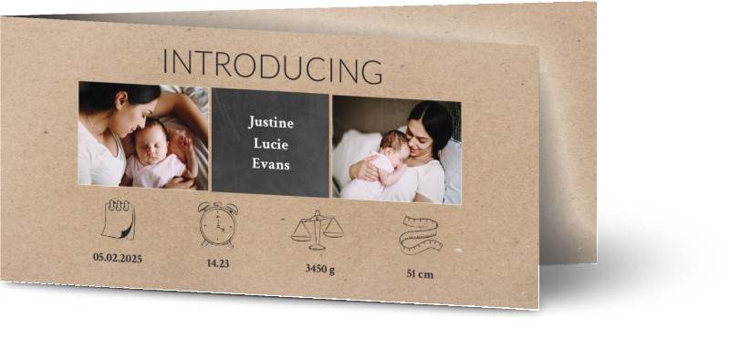 Papier cartonné blanc non vernis, qui offre plus de structure à votre carte, et un fini mat. L'encre est absorbée par le papier, vous permettant d'écrire sur le papier facilement. Le papier mat est idéal pour les invitations et les cartes sans photos.
