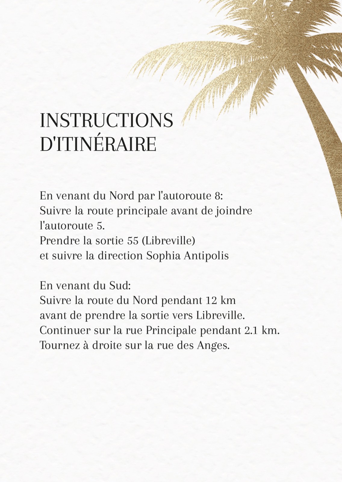 Plans d'accès pour mariages et réceptions