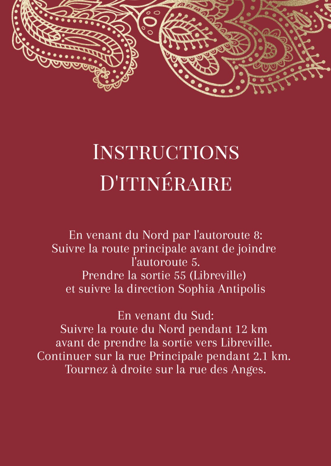Plans d'accès pour mariages et réceptions