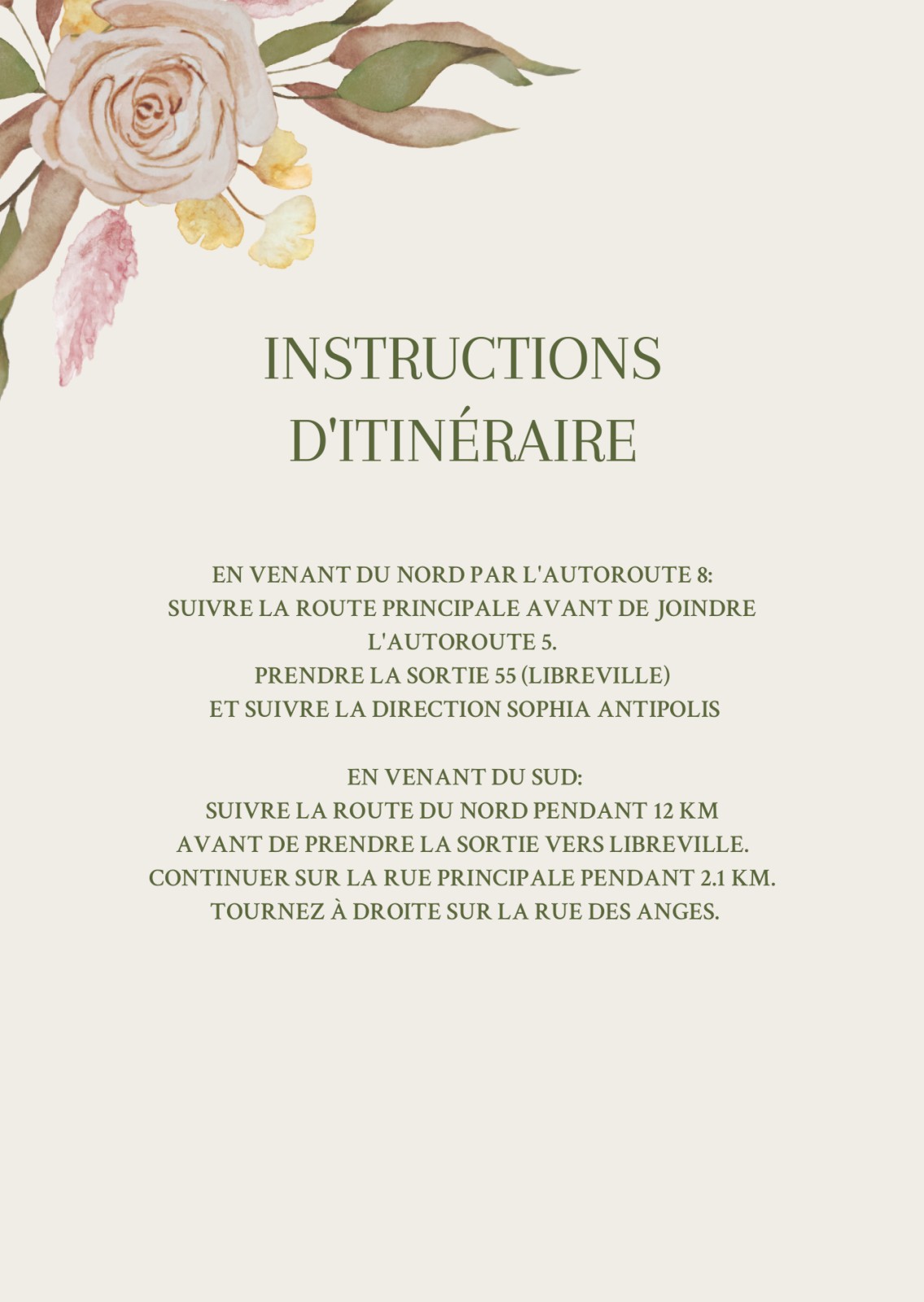 Plans d'accès pour mariages et réceptions