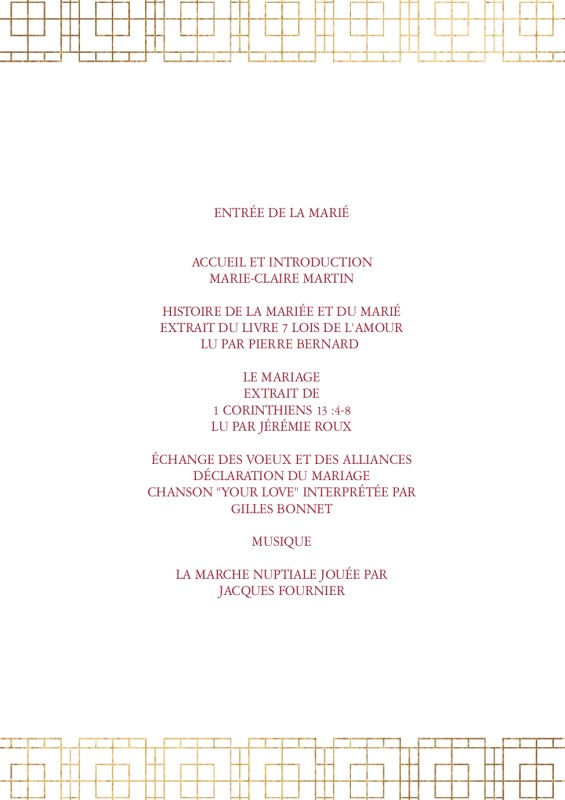 Livret de cérémonie