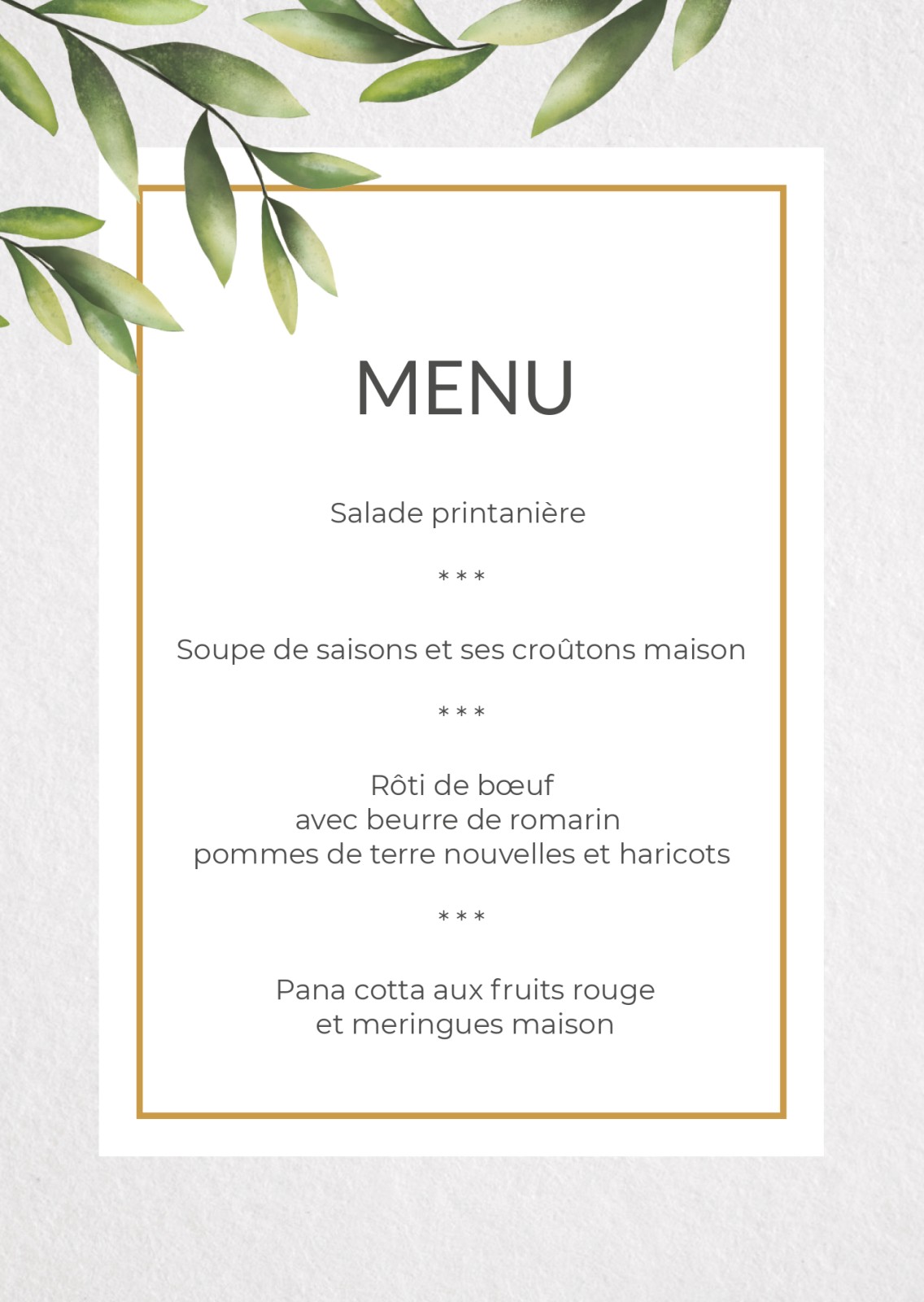 Cartons de menu pour mariages et fêtes