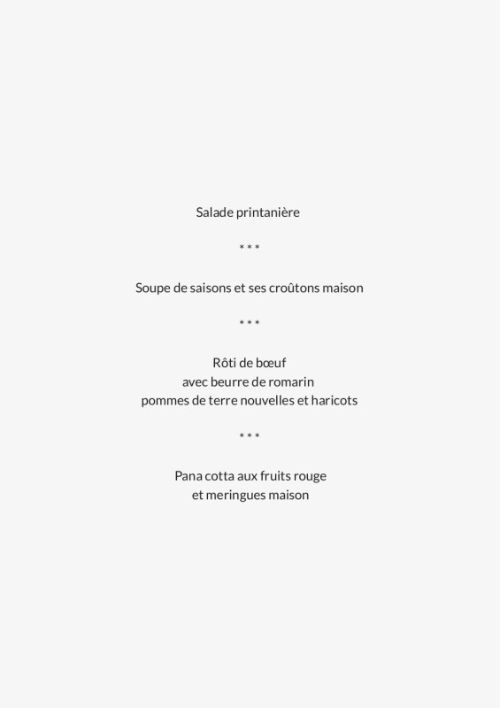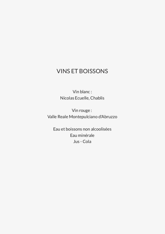 Cartons de menu pour mariages et fêtes