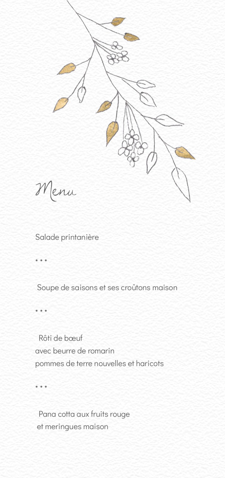 Papier cartonné blanc non vernis, qui offre plus de structure à votre carte, et un fini mat. L'encre est absorbée par le papier, vous permettant d'écrire sur le papier facilement. Le papier mat est idéal pour les invitations et les cartes sans photos.