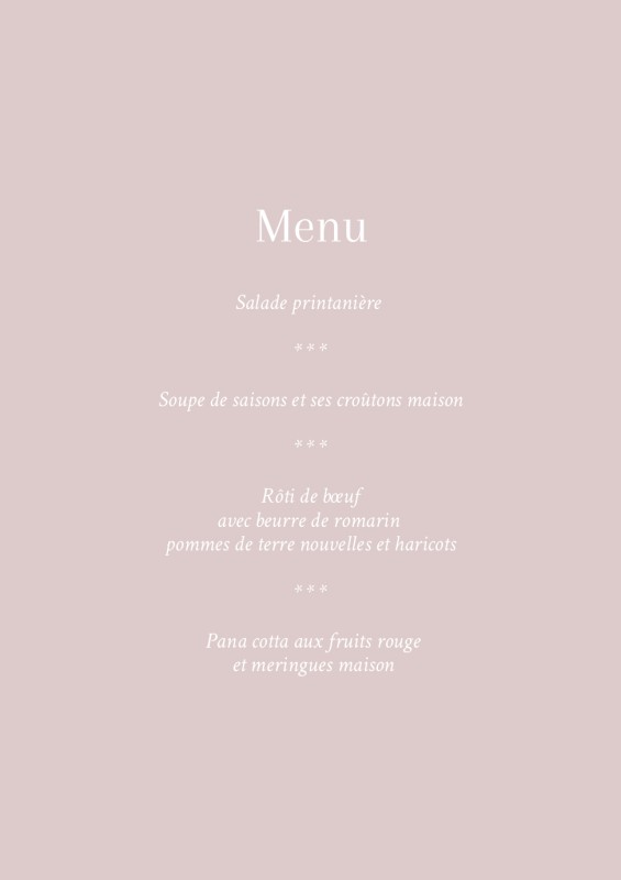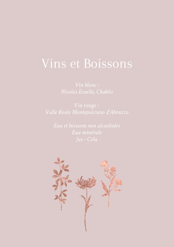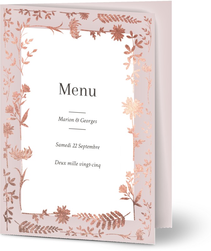 Cartons de menu pour mariages et fêtes