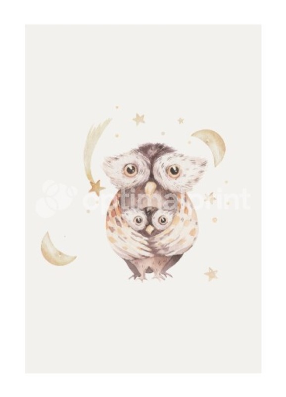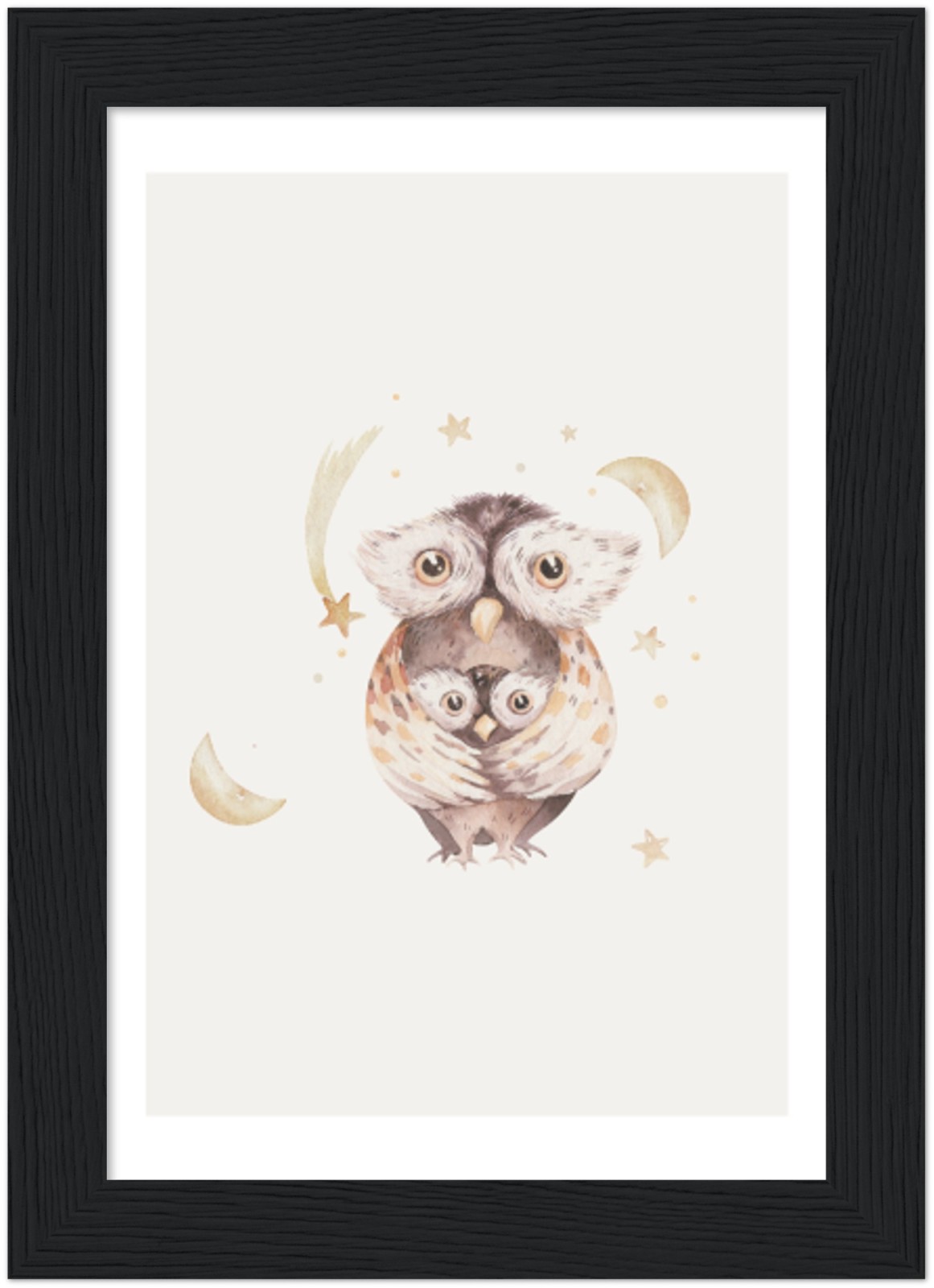mignon, gris, enfants, lune, hibou, étoile, jaune, art-print-animal-illustrations, art-print-baby, art-print-watercolor-paintings