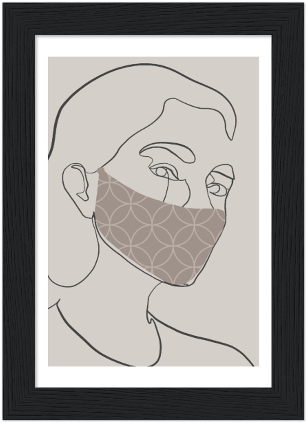 noir, brun, mode, géométrique, masque, minimal, fille, modèle, art-print-line-art, art-print-illustration