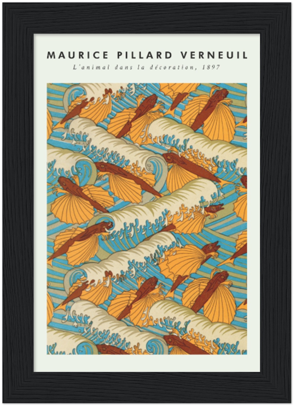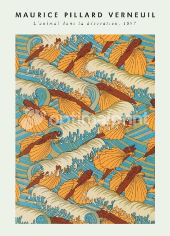 art, bleu, brun, maritime, orange, ancien, animaux, seas, sea-animals, coloré, art-print-illustration