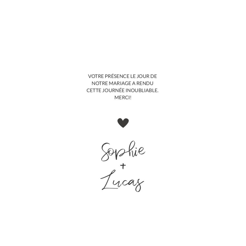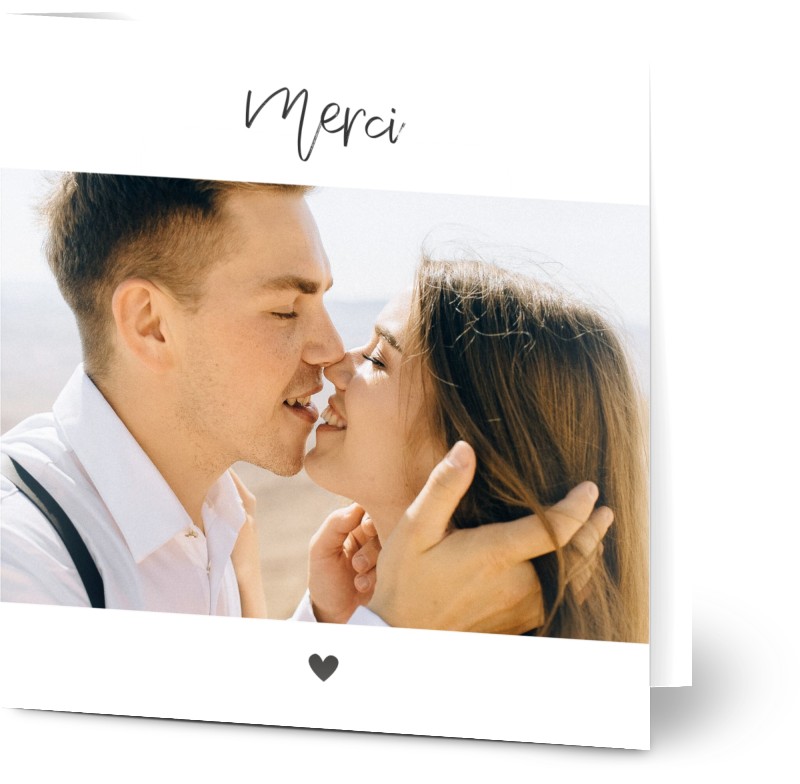 Le jour de votre mariage n'aurait pas été le même sans la participation et le soutien de vos amis et de votre famille. Envoyez-leur une carte de remerciement de mariage personnalisée. Personnalisez facilement vos cartes de remerciement de mariage pour qu'elles soient vraiment les vôtres. Ajoutez des photos et des textes à n'importe quelle page de la carte Optimalprint sans frais supplémentaires.