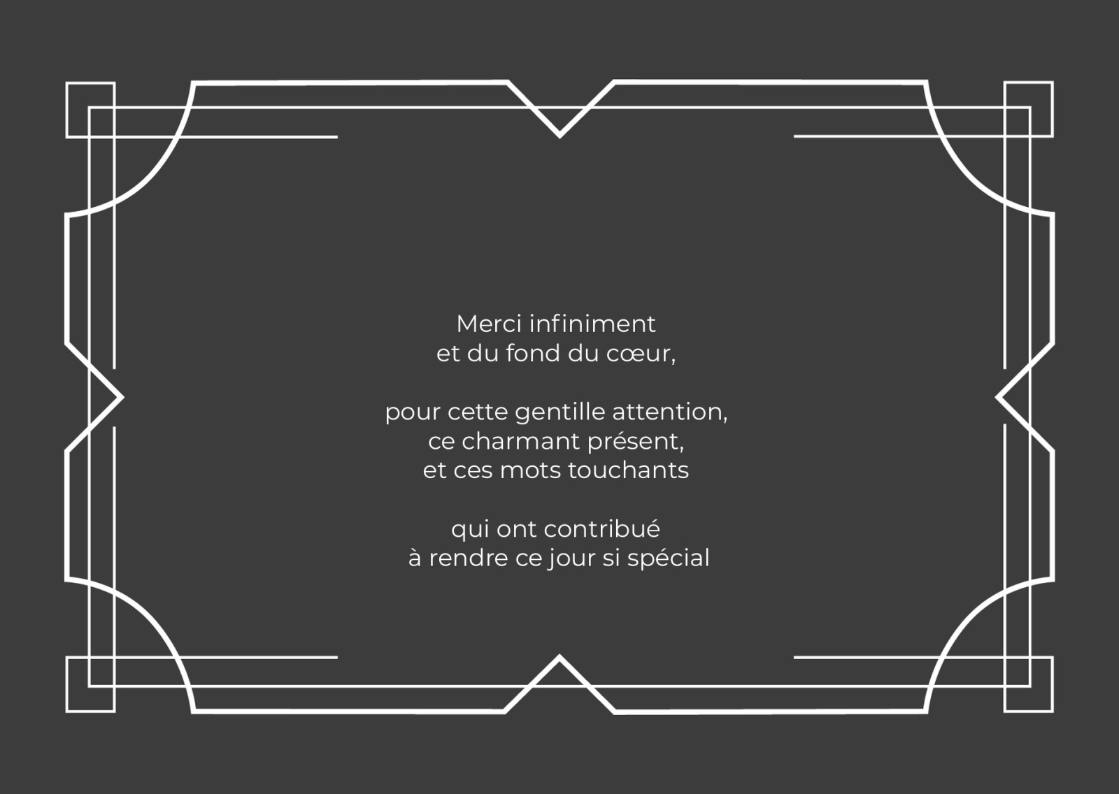 Le jour de votre mariage n'aurait pas été le même sans la participation et le soutien de vos amis et de votre famille. Envoyez-leur une carte de remerciement de mariage personnalisée. Personnalisez facilement vos cartes de remerciement de mariage pour qu'elles soient vraiment les vôtres. Ajoutez des photos et des textes à n'importe quelle page de la carte Optimalprint sans frais supplémentaires.