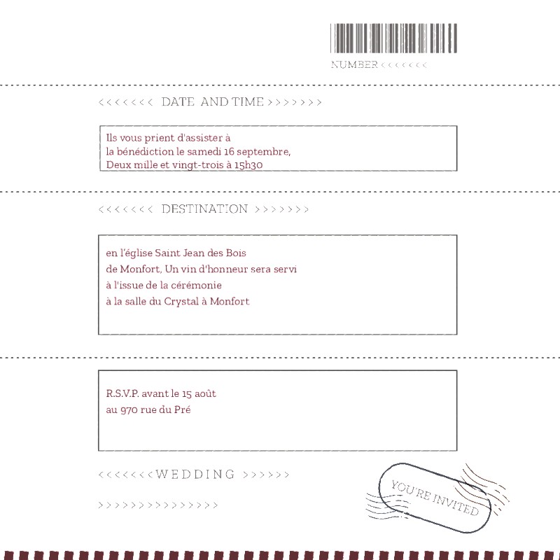 Invitations de mariage sur le thème du voyage.