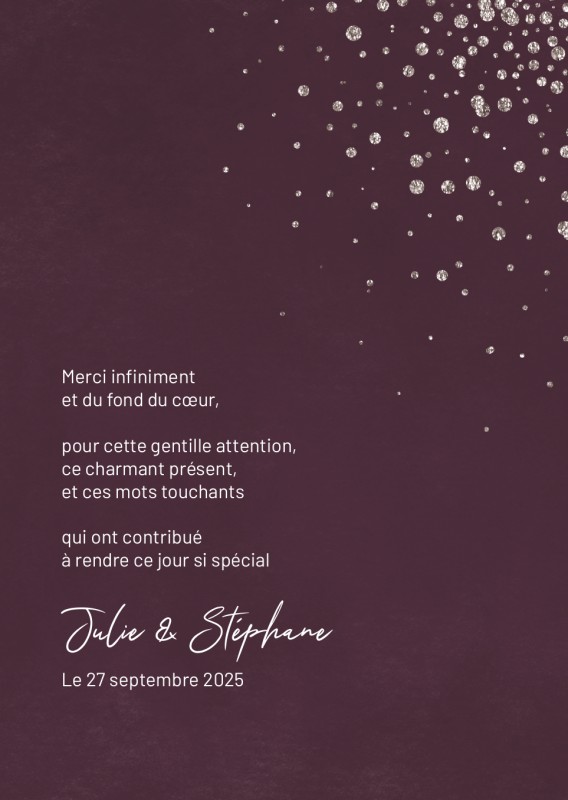 Le jour de votre mariage n'aurait pas été le même sans la participation et le soutien de vos amis et de votre famille. Envoyez-leur une carte de remerciement de mariage personnalisée. Personnalisez facilement vos cartes de remerciement de mariage pour qu'elles soient vraiment les vôtres. Ajoutez des photos et des textes à n'importe quelle page de la carte Optimalprint sans frais supplémentaires.