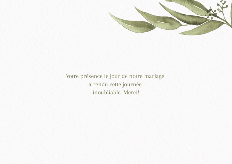 Le jour de votre mariage n'aurait pas été le même sans la participation et le soutien de vos amis et de votre famille. Envoyez-leur une carte de remerciement de mariage personnalisée. Personnalisez facilement vos cartes de remerciement de mariage pour qu'elles soient vraiment les vôtres. Ajoutez des photos et des textes à n'importe quelle page de la carte Optimalprint sans frais supplémentaires.