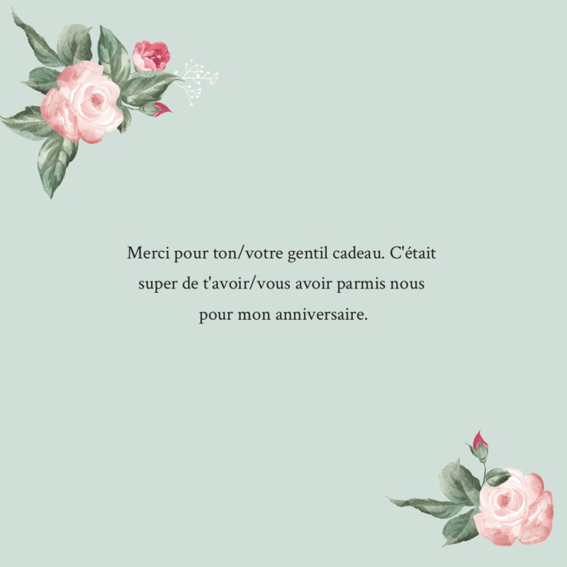 Cartes de remerciements personnalisées fleuries pour anniversaire