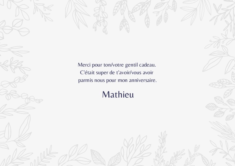 Cartes de remerciements personnalisées fleuries pour anniversaire