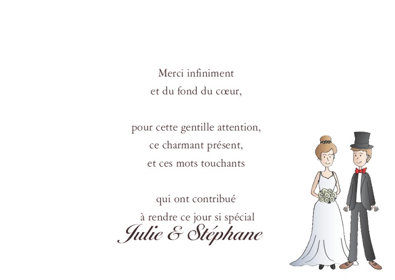 Le jour de votre mariage n'aurait pas été le même sans la participation et le soutien de vos amis et de votre famille. Envoyez-leur une carte de remerciement de mariage personnalisée. Personnalisez facilement vos cartes de remerciement de mariage pour qu'elles soient vraiment les vôtres. Ajoutez des photos et des textes à n'importe quelle page de la carte Optimalprint sans frais supplémentaires.