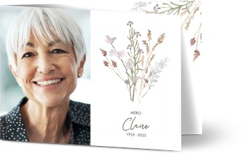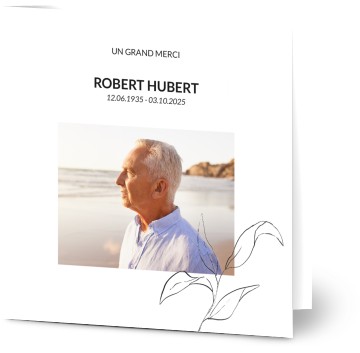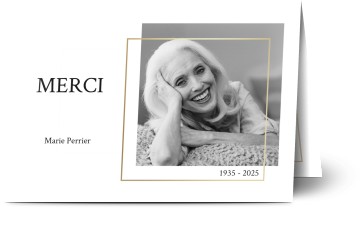 Cartes de remerciement pour funérailles de bon goût et élégantes – Optimalprint - Nos cartes de remerciement pour funérailles expriment votre immense gratitude envers les membres de la famille et les amis qui vous aident à faire votre deuil après la perte d'un être cher.Dans ces moments, leur attention et leur soutien rendent le processus un peu plus facile. Si vous souhaitez leur apporter votre soutien, une carte de remerciement personnalisée pour funérailles est la solution idéale.Chez Optimalprint, nous comprenons l'importance des cartes de remerciement pour funérailles et leur rôle dans le deuil. C'est pourquoi nous proposons une gamme de cartes de condoléances personnalisables pour les funérailles de votre être cher. Nos cartes sont imprimées avec soin et une attention particulière aux détails, et nous proposons une variété de designs, de polices et de tailles pour répondre à vos préférences.De plus, nous offrons une assistance clientèle 24 heures sur 24 et 7 jours sur 7, une application facile à utiliser et une livraison rapide de vos cartes de remerciement pour funérailles. Et pour couronner le tout, nous utilisons du papier respectueux de l'environnement, ce qui fait de nous un choix plus durable pour vos besoins d'impression.Cartes de remerciement pour funérailles - Livraison facile et rapide par Optimalprint Les cartes de remerciement pour funérailles sont un moyen de montrer respect et gratitude envers ceux qui ont pris le temps d'assister aux funérailles ou d'envoyer des condoléances. Une carte de remerciement pour funérailles est un rappel tangible de leur effort et de leur gentillesse, et peut aider à renforcer vos relations avec eux. De plus, les cartes de remerciement pour funérailles honorent la mémoire du défunt en reconnaissant son impact sur les autres et sur la communauté. C'est aussi un moyen de partager son héritage et de continuer à célébrer sa vie. Les cartes de remerciement pour funérailles offrent ainsi un certain réconfort.Par conséquent, nous ne laissons rien au hasard pour que votre carte de remerciement pour funérailles ait l'apparence que vous souhaitez.Dans notre application mobile, vous pouvez trouver de nombreux modèles et l'option d'ajouter du texte, des photos et des images. Vous pouvez ainsi créer des cartes de remerciement pour funérailles personnalisées uniques en quelques minutes. Et au cas où vous vous poseriez des questions, vous n'avez besoin d'aucune expérience en conception de produits ou en retouche photo pour utiliser notre application. Tout ce que vous avez à faire est de cliquer sur quelques boutons, peut-être de glisser-déposer quelques éléments, et vous avez terminé !Cartes de remerciement de condoléances - notre collectionBien que l'envoi d'une carte de remerciement après un enterrement ne soit pas une obligation, cela témoigne d'un geste attentionné. Aussi, ces cartes de remerciement commémoratives aident à apporter un sentiment de réconfort et de paix à la personne en deuil.Cependant, cette personne est souvent à court de mots et incapable d'exprimer ses sentiments. En tenant compte de la situation et de l'objectif de la carte, nous avons une collection de cartes de remerciement commémoratives préconçues. Avec un simple « merci » concis et efficace, ces cartes transmettent efficacement votre gratitude sincère à votre famille et à vos amis.Cela étant dit, nous offrons plusieurs designs et mises en page parmi lesquels choisir afin de créer la carte de remerciement parfaite pour des funérailles. Voici quelques-uns des choix les plus populaires sur notre site Web :Cartes de remerciement minimales pour funéraillesParfois, moins on en dit mieux c’est, surtout dans des périodes difficiles comme celles-ci. C'est là que nos cartes de remerciement funéraires minimales seront idéales. Par exemple, une carte avec une mise en page blanche et grise a un aspect simple mais élégant, avec quelques lignes exprimant votre gratitude.Ou vous pouvez opter pour une carte de remerciement pour funérailles blanche plate/pliée sans motifs, juste le texte écrit dans une belle police cursive. Cependant, si vous ne trouvez pas quelque chose qui vous parle, envisagez une mise en page personnalisable, où vous pouvez télécharger votre propre design et ajouter des notes manuscrites plus tard. Nous croyons fermement qu'écrire un « merci » sur la carte de remerciement pour funérailles sera particulièrement apprécié par le destinataire de la carte.Cartes de remerciement florales pour funéraillesVous ne pouvez jamais vous tromper avec les fleurs, et nous offrons une grande variété de cartes de remerciement florales pour funérailles. Vous pouvez opter pour une élégante carte de remerciement pour funérailles avec des roses et des feuilles vert vif sur les bordures. Notre carte de remerciement pour funérailles grise et minimaliste avec un lys sur le côté est une autre option populaire.Vous pouvez également explorer d'autres designs, comme celui d’un chêne avec un ciel bleu vif. La lumière du soleil passant à travers les feuilles de l'arbre évoque un sentiment d'espoir après la perte d'un être cher.Carte de remerciement pour funérailles avec photoChez Optimalprint, vous pouvez ajouter une touche personnelle aux cartes de remerciement pour funérailles avec une photo de votre proche décédé. Nos cartes peuvent ainsi aider à commémorer la vie de votre proche et offrir des remerciements sincères à ceux qui ont exprimé leurs condoléances et leur soutien.Vous pouvez consulter des modèles de cartes en noir et blanc avec des pois dorés dans le coin inférieur droit. Ou bien, vous pouvez opter pour notre carte de remerciement pour funérailles beige pliable et carré, où vous pouvez utiliser deux photos différentes.Cartes de remerciement pour deuil - Options de personnalisationEn plus de nos modèles, nous permettons une personnalisation complète de 